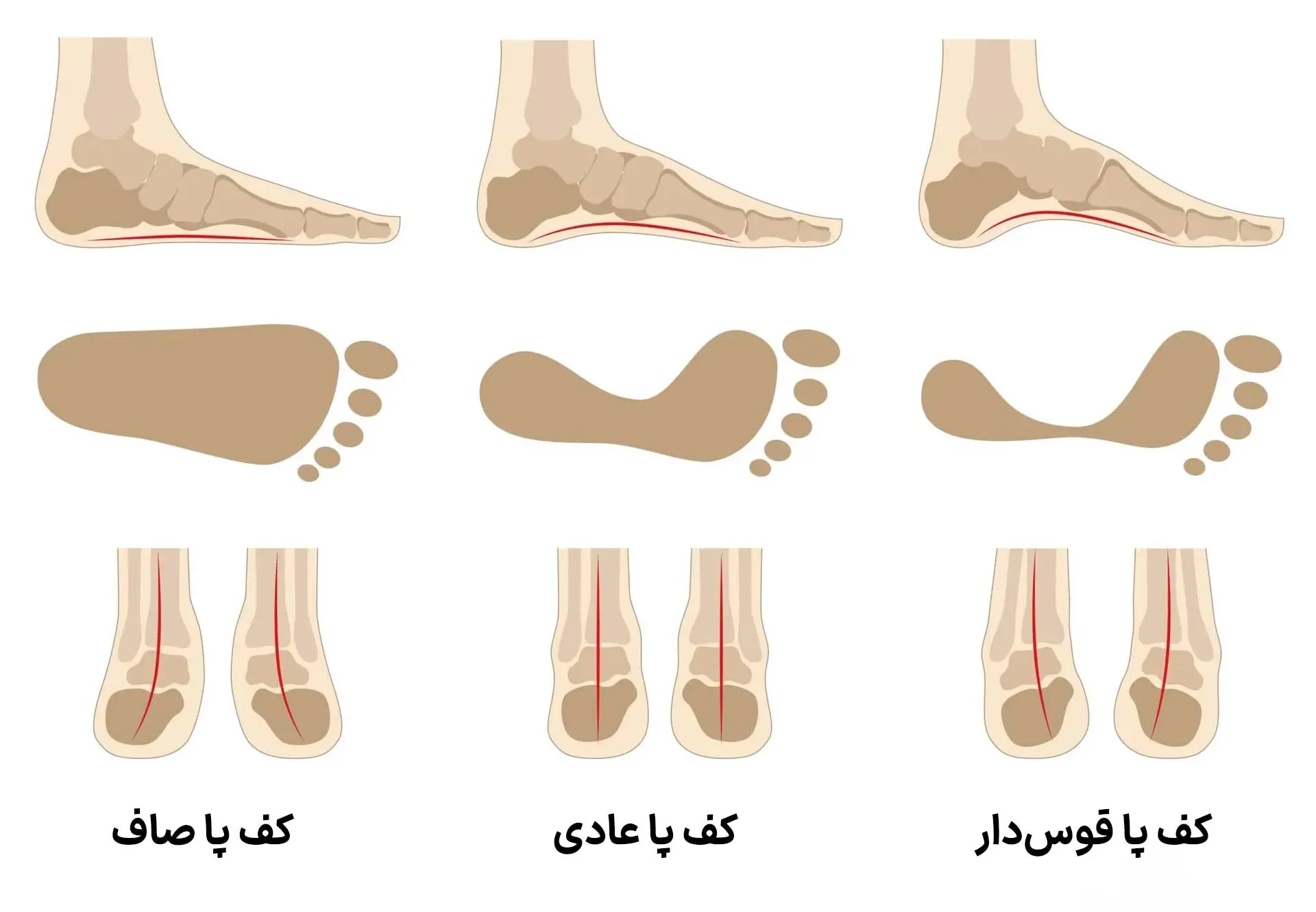 - خستگی زودرس پاها: چون عضلات باید برای جبران نبود قوس، بیشتر کار کنند.