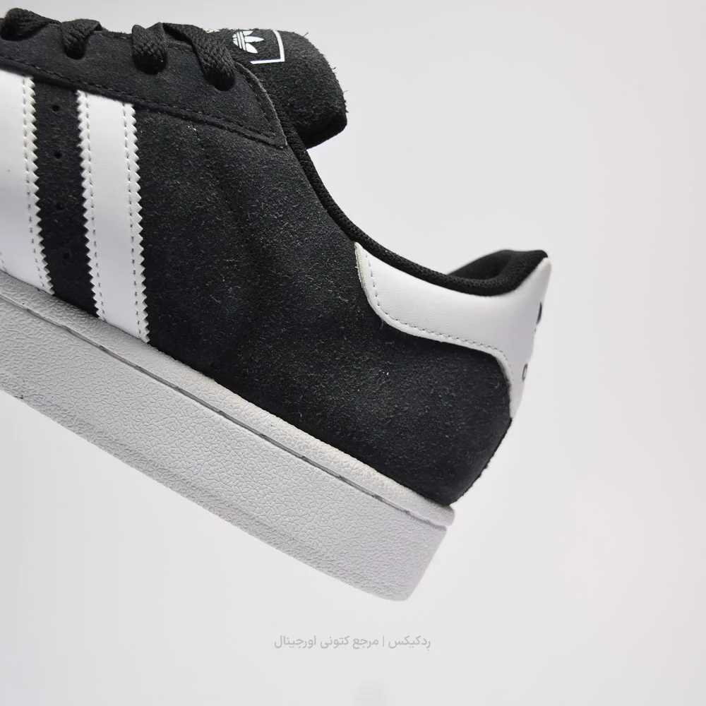 • رویه از Suede نرم و مقاوم با خطوط سه‌گانه‌ی Adidas در کناره‌ها جلوه‌ای مینیمال و رترو ایجاد می‌کند.