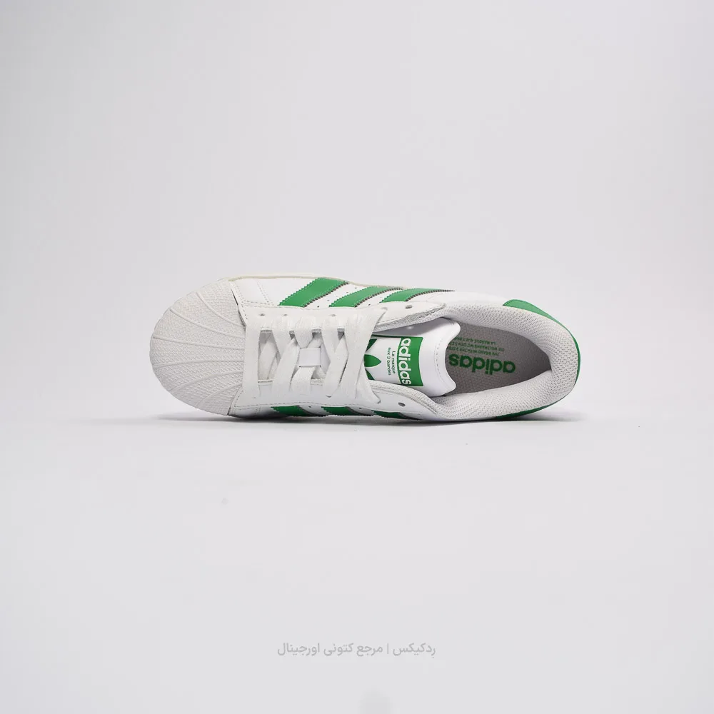 • پوشش جلویی Shell‑Toe مشخصه‌ی اصلی Superstar است و از انگشتان پا در برابر ضربه محافظت می‌نماید.